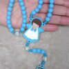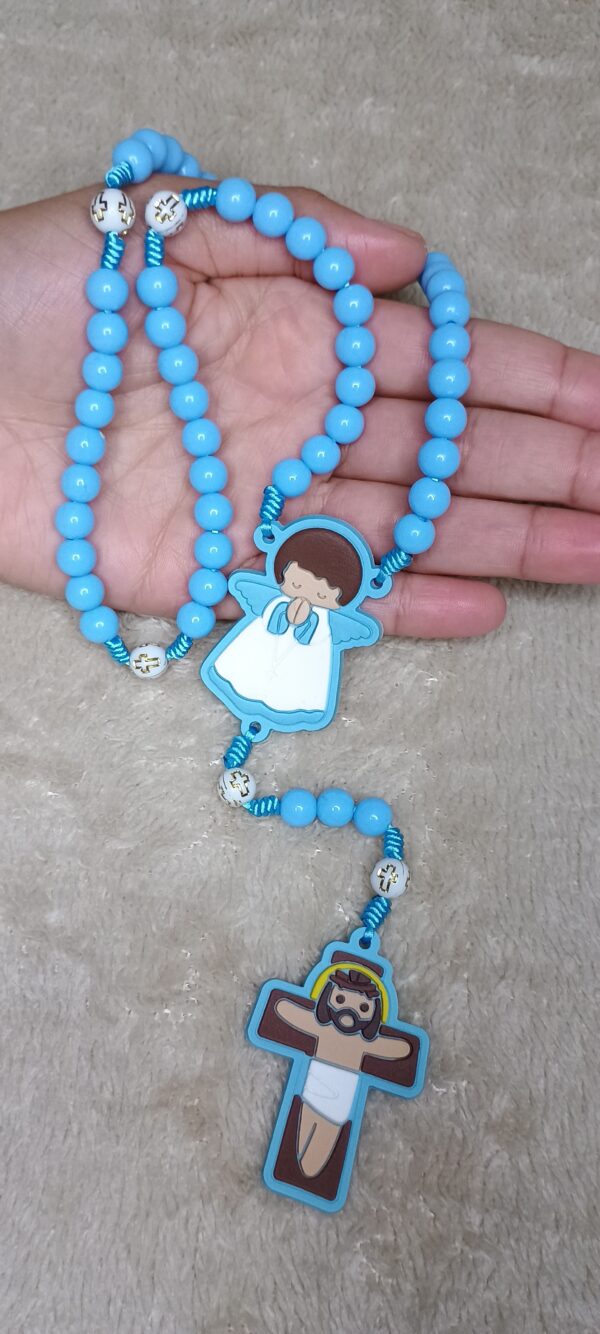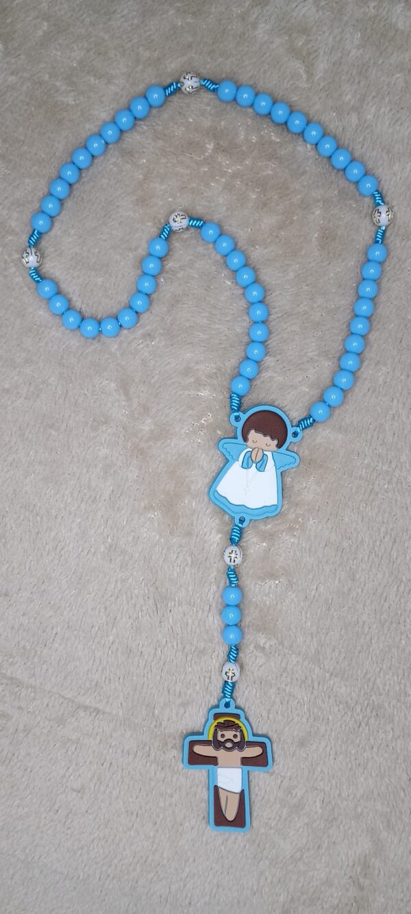 Cada conta é feita com cuidado, com destaque para as contas do Pai Nosso, ajudando a criança a identificar e acompanhar cada parte da oração. Essa característica torna o terço não apenas um objeto de devoção, mas também uma ferramenta educativa para ensinar a sequência das orações.